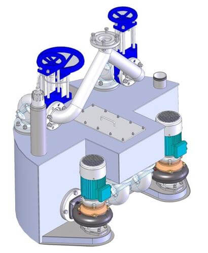 Atık su pompa istasyonunun yapısı, onarım ve bakım işleri için temel elemanlarına (pompa, seperatörler) çalışmasını durdurmadan erişime imkan sağlayacak şekilde tasarlanmıştır.