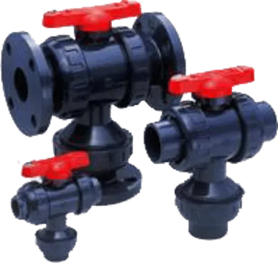 The 3-WAY BALL VALVE is based on the Asahi true union ball valve design which can be installed or removed only by tightening or loosening its union nut.