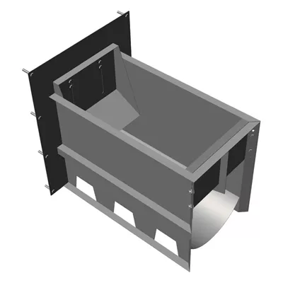 DB tipi akış regülatörü, muayene bacasının çıkışına monte edilir, yani çalışma sırasında su altında kalır. Bu tip akış regülatörü betona gömülmek üzere tasarlanmıştır. Tortu birikimi, sekinin her yönünden rögar kanalına doğru aşağı doğru eğimli olacak şekilde dökülmesiyle en aza indirilir. Ayrıca, aşağıya inmeden yukarıdan yıkanarak yapıyı temizlemek daha kolaydır. Bu, kontrol, servis veya kapasite değişikliklerinin ideal hijyen koşulları altında gerçekleşmesini sağlar.
